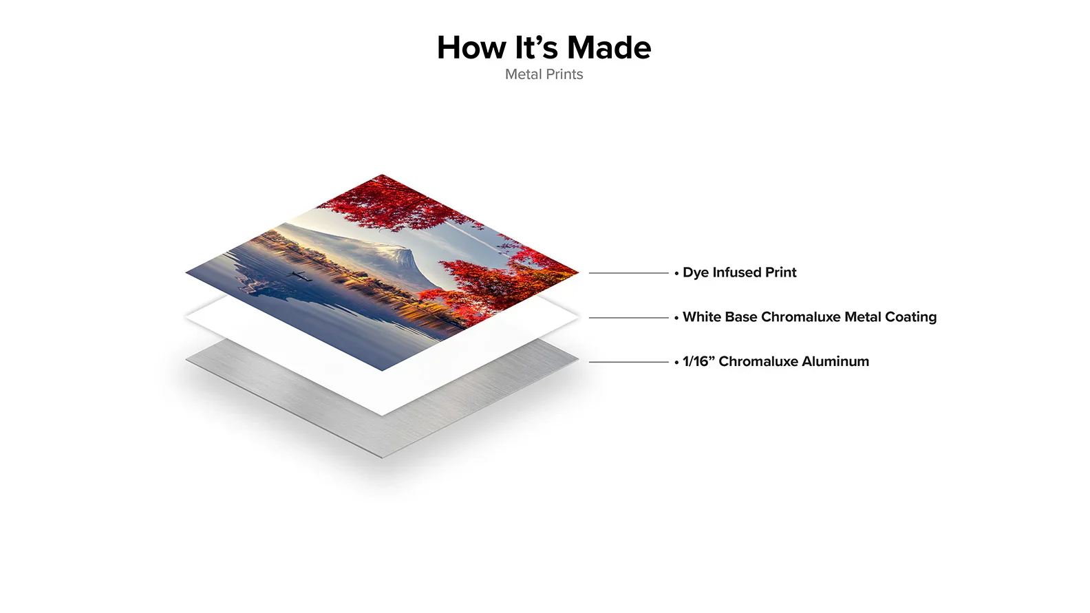 Mystic Wander Chromaluxe metal prints are also produced by an outside lab. The image is first printed to a transfer paper, then infused (via “dye sublimation”) into Chromaluxe metal by heat and pressure. This process combined with custom made color profiles give true to life colors along with exceptional detail.