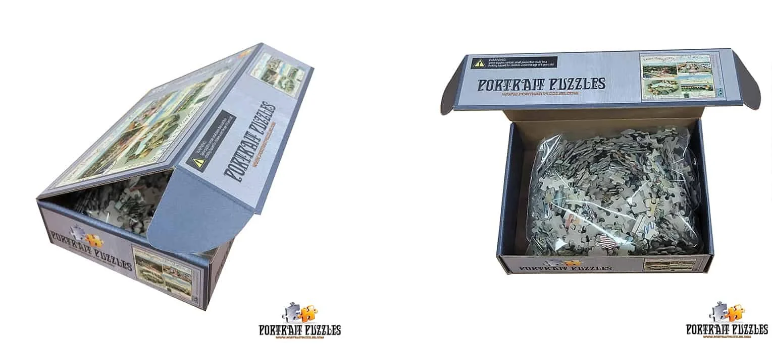 Portrait Puzzles are more traditional 500-piece jigsaw puzzles (16” x 20” image). Portrait Puzzles is a Wisconsin-based company producing high-quality custom puzzle designs on par with companies such as Ravensburger. All products are made in Wisconsin, USA. Learn more about the company here.